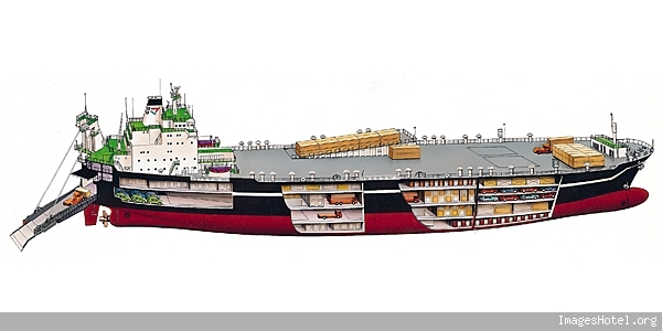 Et pour finir le bateau roulier en coupe: