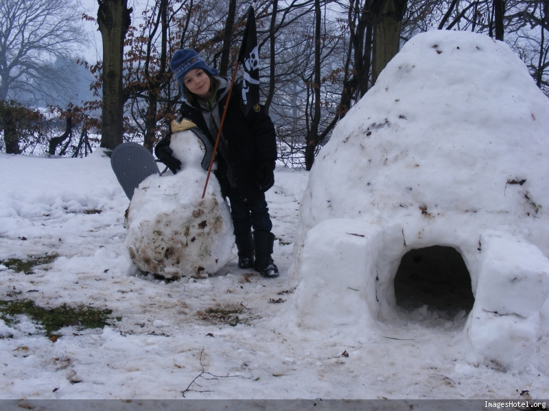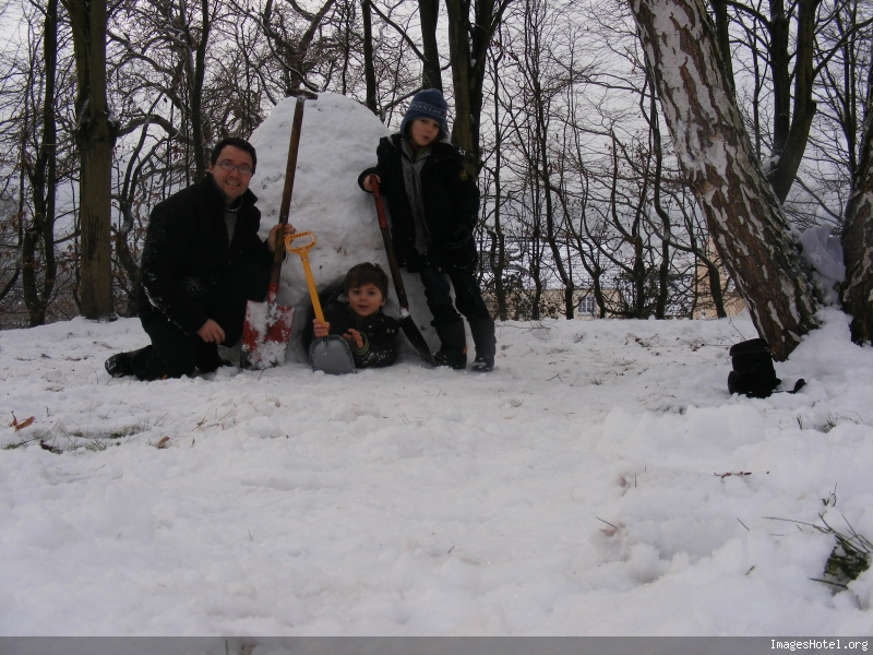 Je leur propose de construire un igloo… Une boite en plastique et 3 pelles font l’affaire. On commence le matin 2 heures puis on finalise l’après midi soit un total de 5 heures.